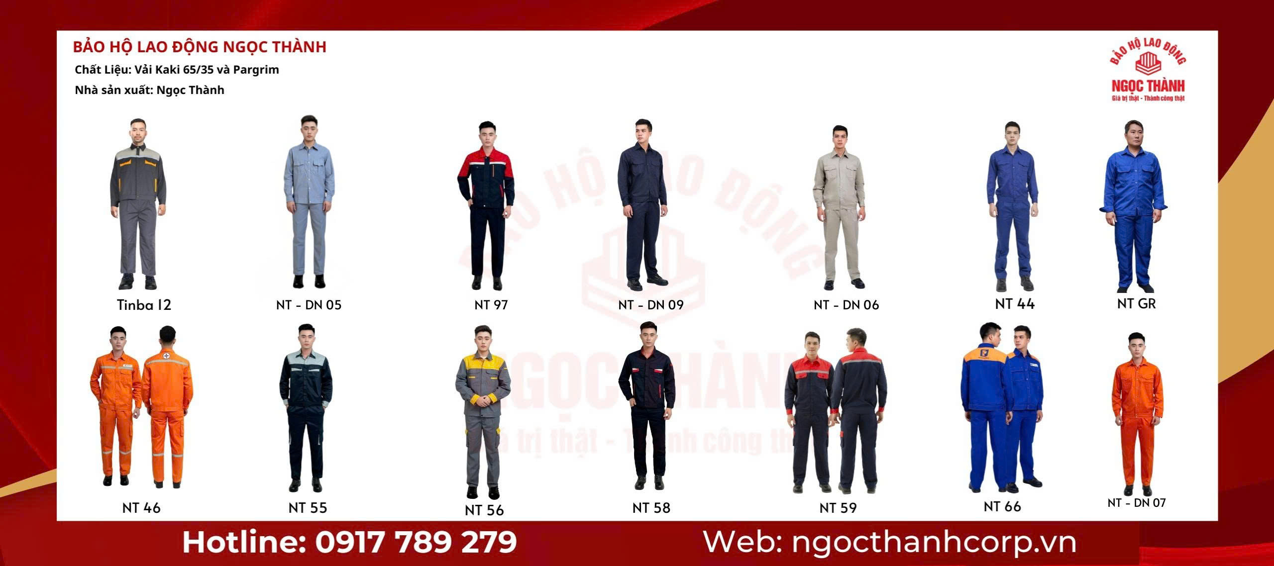 Quần áo bảo hộ lao động màu ghi phối đỏ – NT 57