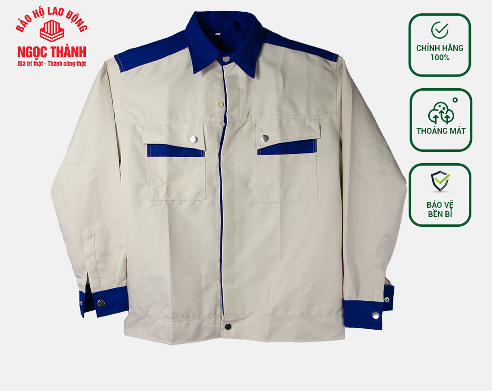 Đồng phục bảo hộ màu kem phối xanh bích
