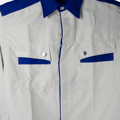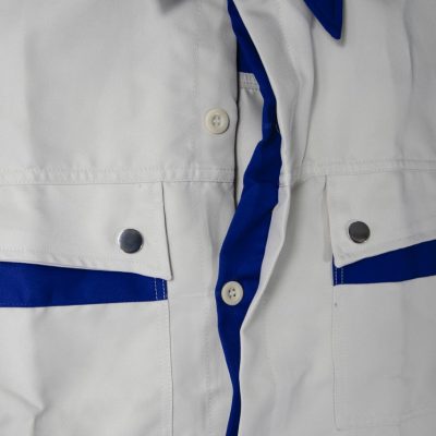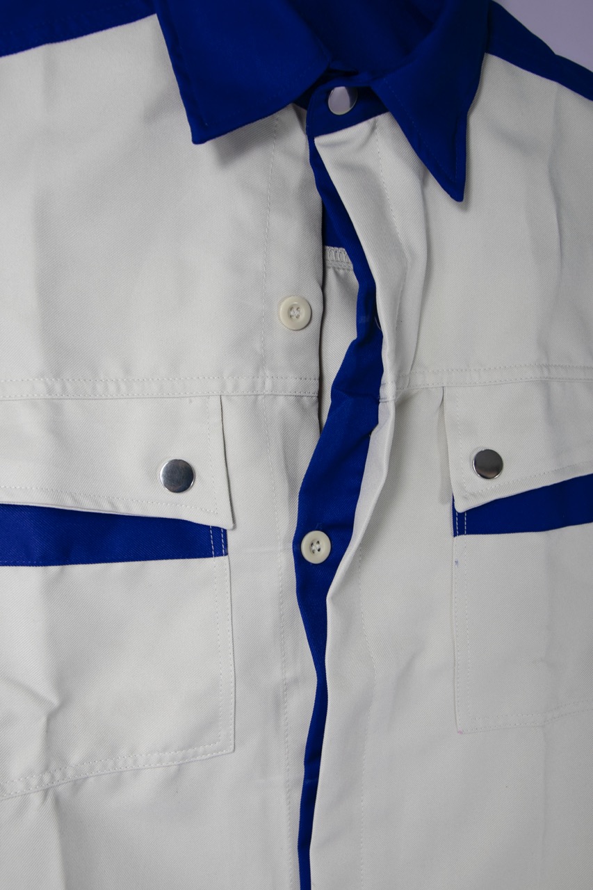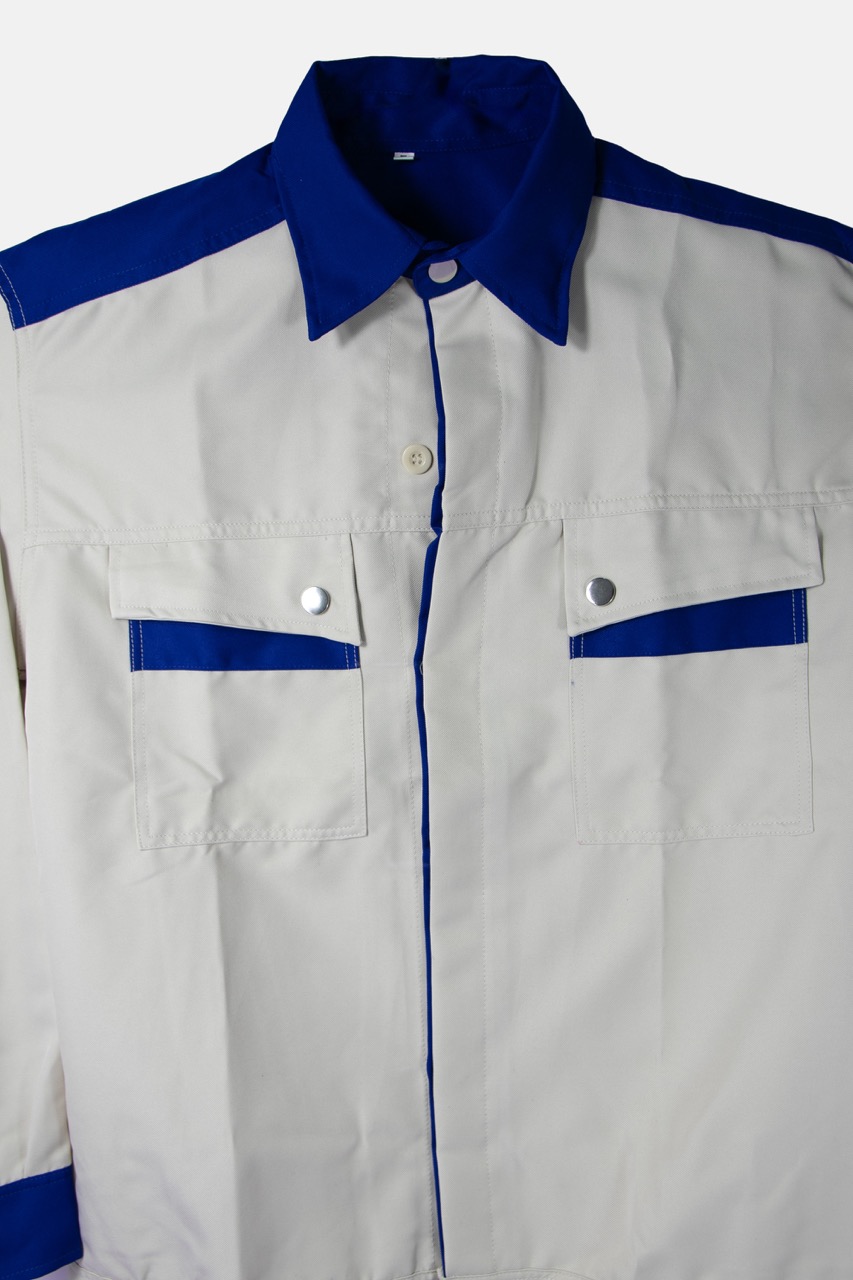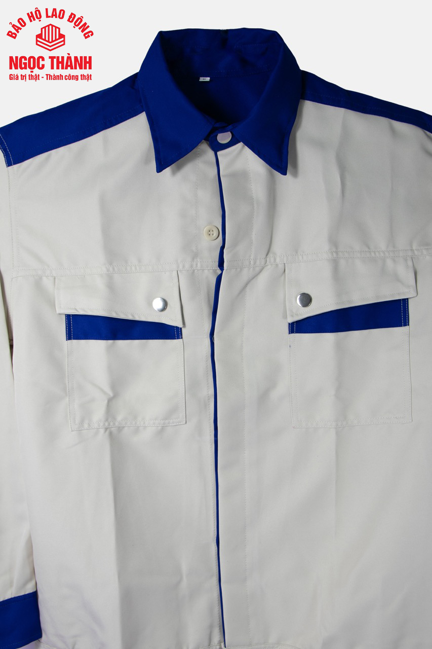 − Form áo đứng, cổ bẻ đức, khuy gài tay áo gọn gàng làm việc thoải mái.