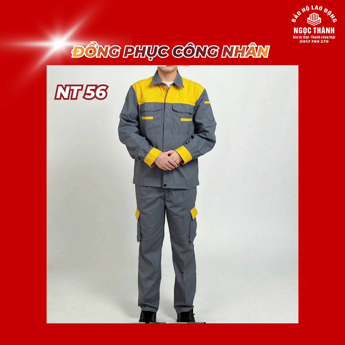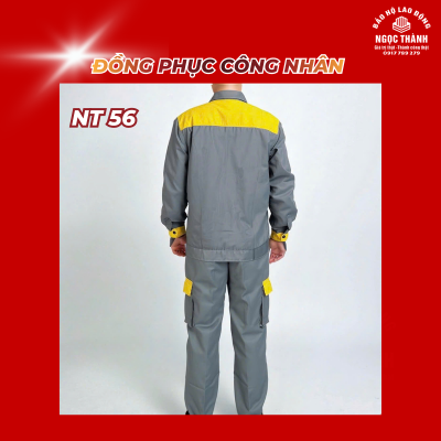 – NT 56 là mẫu quần áo bảo hộ cao cấp được thiết kế nổi bật, chuyên biệt cho công nhân cơ khí, xây dựng, nhà máy, xưởng, và cầu đường. Bộ sản phẩm có màu ghi xám phối xanh dương tại các vị trí dễ bám bẩn như vai, cổ áo, nách và cánh tay giữ vẻ ngoài luôn gọn gàng, sạch sẽ.