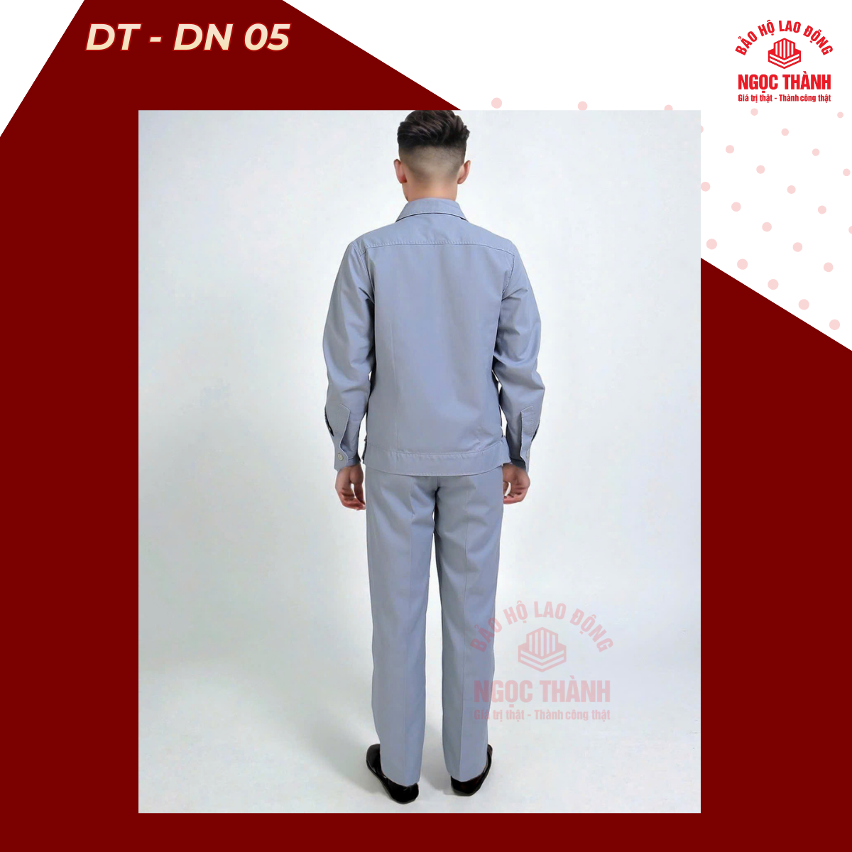 − Form áo đứng, cổ bẻ đức, khuy gài tay áo gọn gàng làm việc thoải mái.