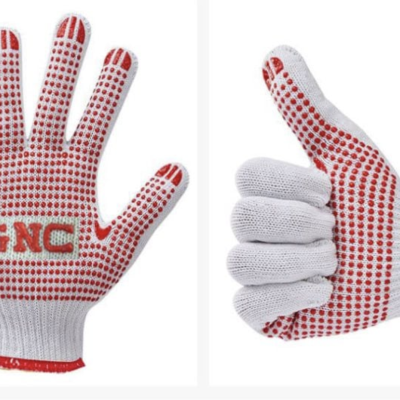 – Chất liệu: Sợi 100% cotton hoặc 100% Polyester phụ hạt nhựa chống trơn trượt trong lòng găng tay.