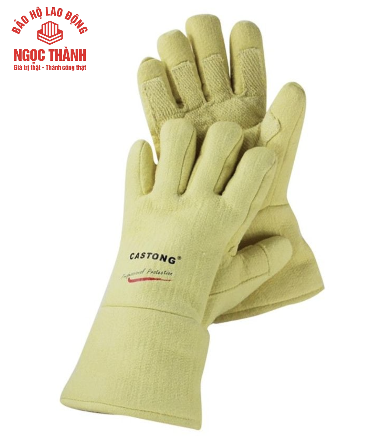 Găng chịu nhiệt Castong 500 độ màu vàng được ứng dụng rộng rãi trong công nhiệp, nhà máy luyện kim, đun nấu trong sản xuất…