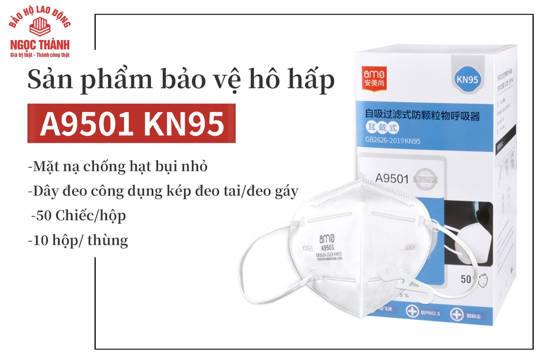 Khẩu trang KN95, quy cách A9501 BAO HO NGOC THANH