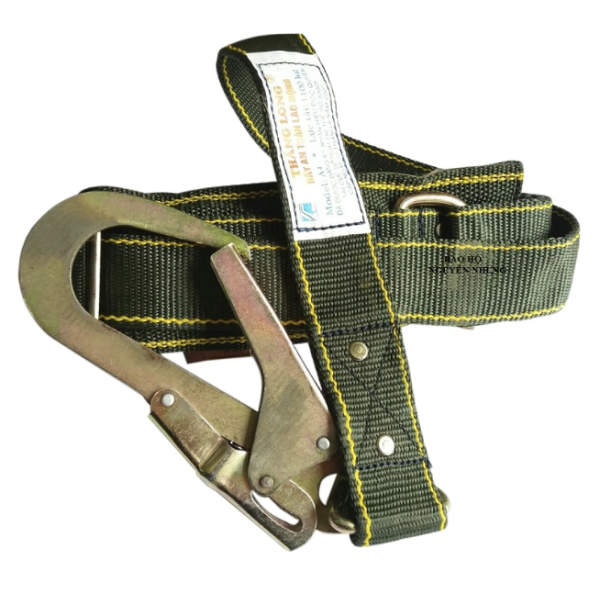 Dây bảo hiểm an toàn chuyên dùng cho thợ điện, thợ cơ khí làm mái, thợ xây công trình. Dây an toàn xanh A4 1 móc to: Chịu trọng tải 1100kg. Dùng rất an toàn khi làm việc ở độ cao.