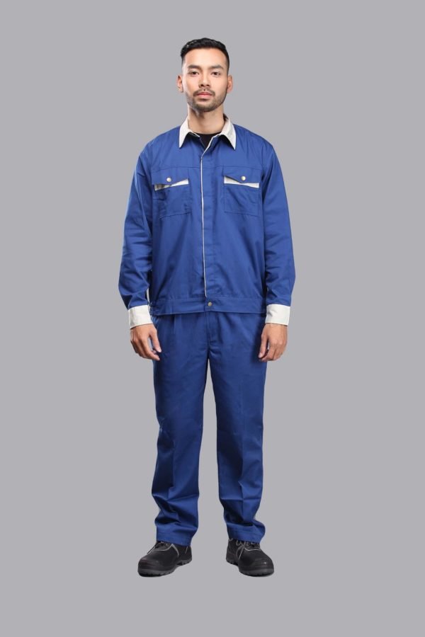 – Quần áo bảo hộ Tinba 02 có điểm nhấn nổi bật với xanh dương phối trắng ở cổ và tay áo, tạo vẻ ngoài chuyên nghiệp và hiện đại.